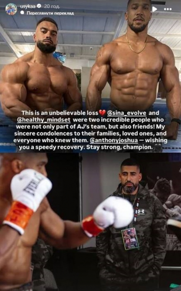 Власник титулів WBC, WBA та IBF у надважкій вазі Олександр Усик відреагував на трагічний інцидент, у який потрапив ексчемпіон Ентоні Джошуа, внаслідок якого загинули його тренери.